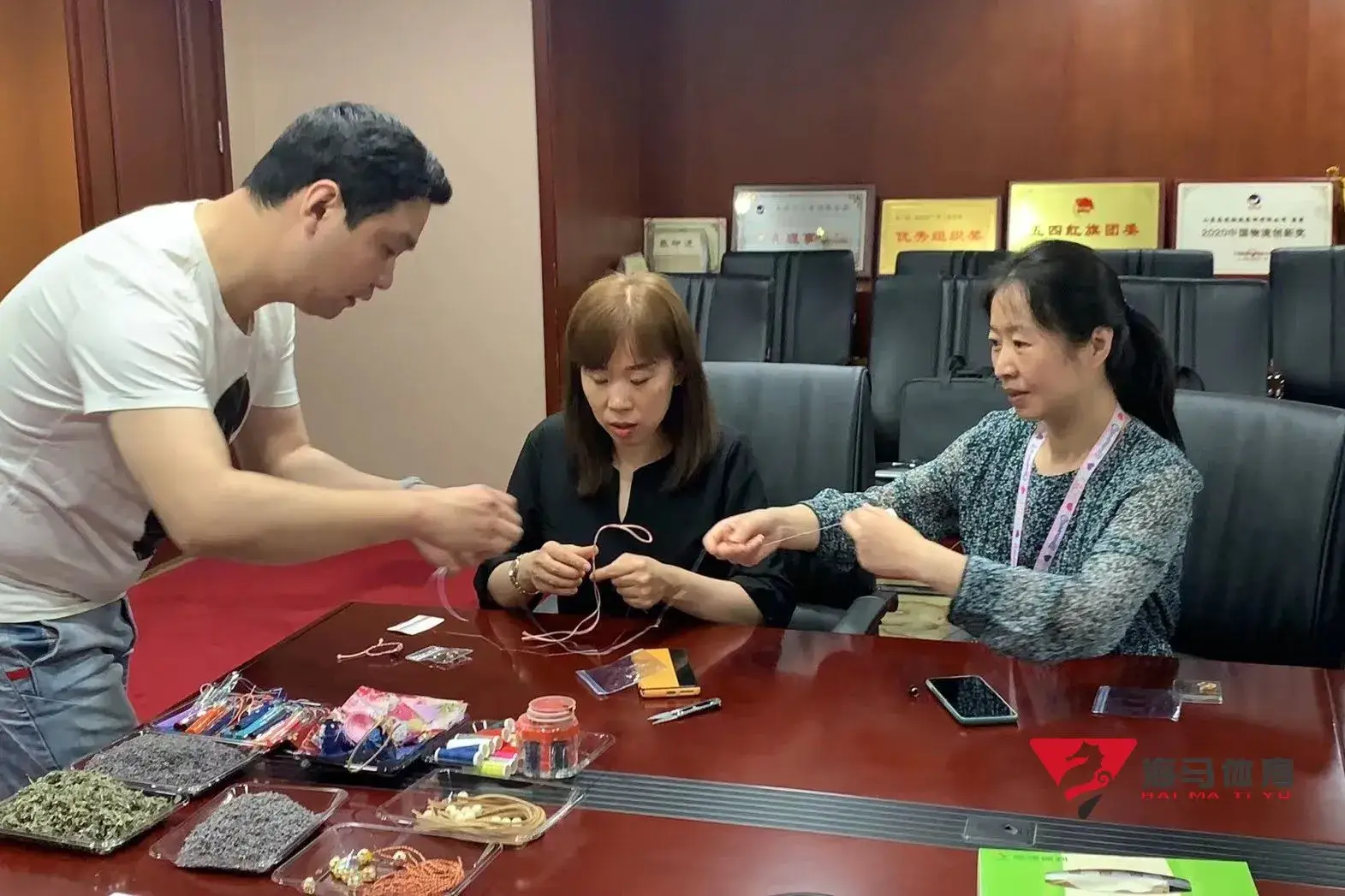 制作前,谈球吧的手工老师首先介绍了端午的习俗以及端午节制作香囊与五彩绳的来历,让大家在活动前了解端午的民俗文化,手工老师将精心准备的有着美好寓意的五色彩绳、色彩绚丽的香包袋以及清香的艾草薰衣草,送到职员手中,携手制作香包和五彩绳。